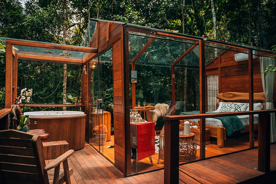 Aqui você poderá usufruir da primeira cabana de VIDRO localizada em nosso Estado, uma experiência única e inesquecível, um banho de natureza sem perder o conforto do lar, além disso observar espécies de plantas e animais da Mata Atlântica com toda praticidade e segurança.