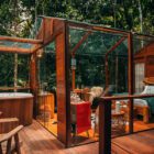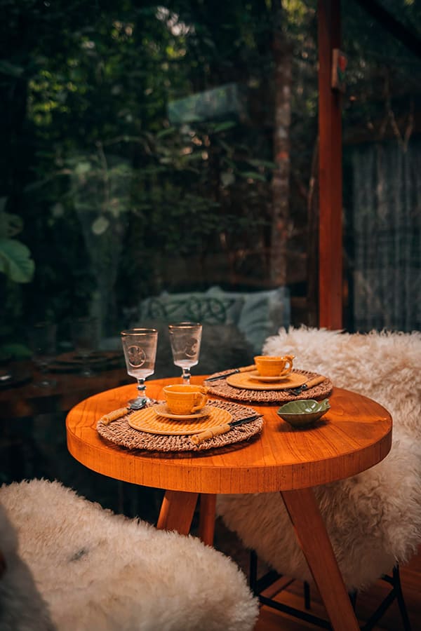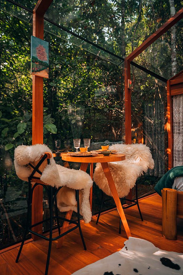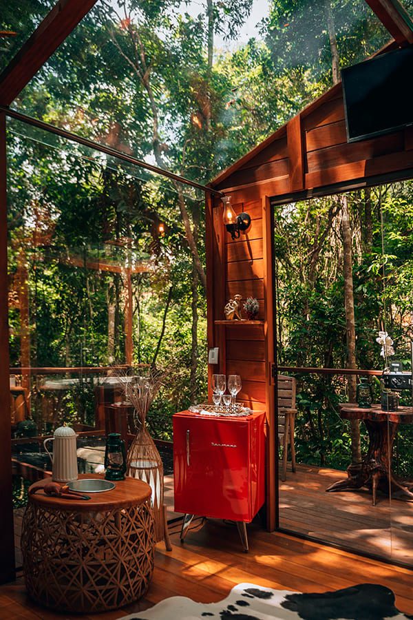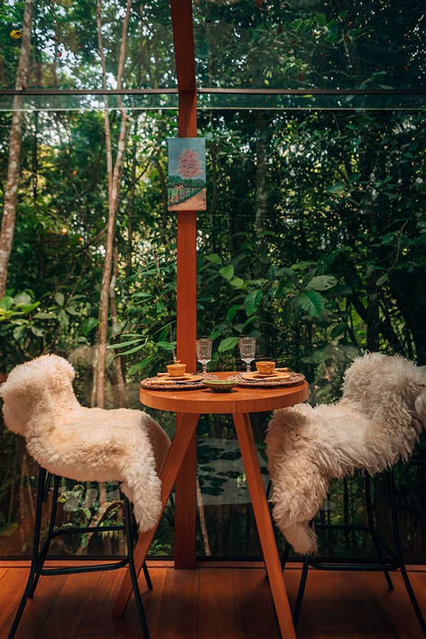 Ao entardecer, relaxe na ecosauna de vidro, imerso no cenário deslumbrante que o cerca. À noite, a diversão é garantida ao redor do fogo de chão, o lugar perfeito para compartilhar histórias e criar memórias sob a luz das estrelas. No pomar, sinta o sabor e o perfume da natureza.