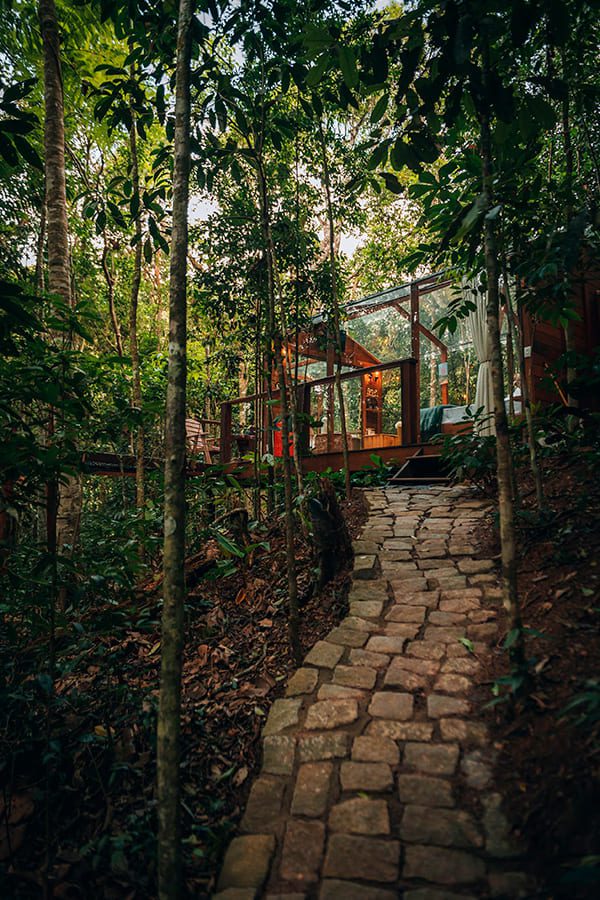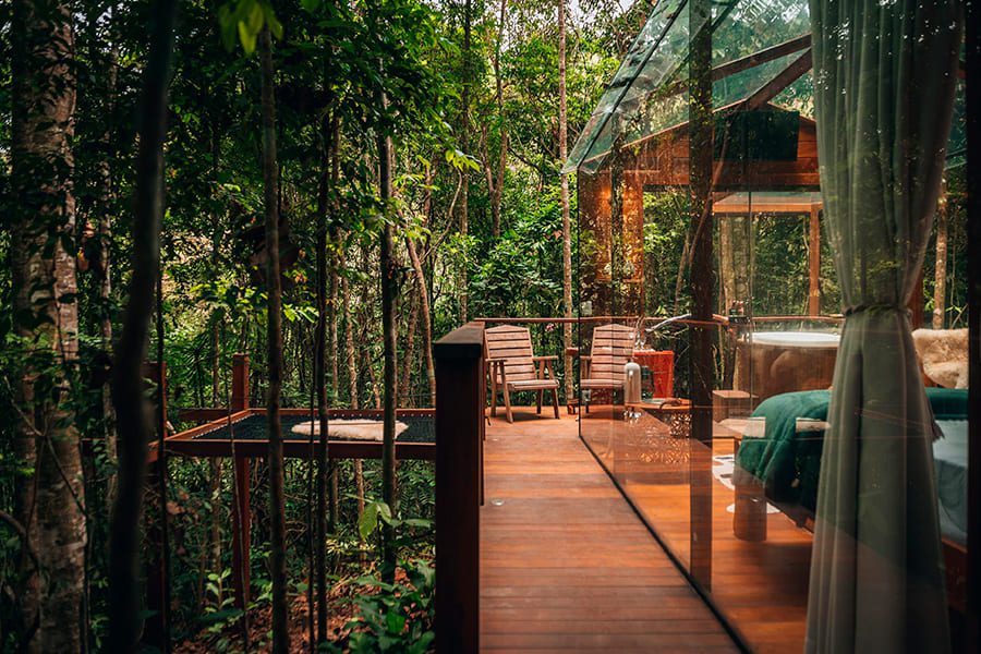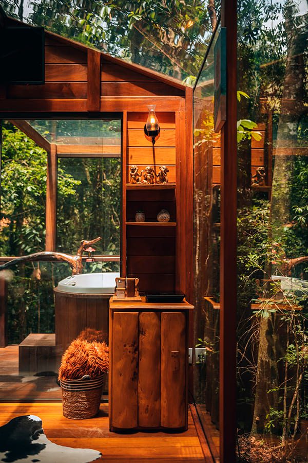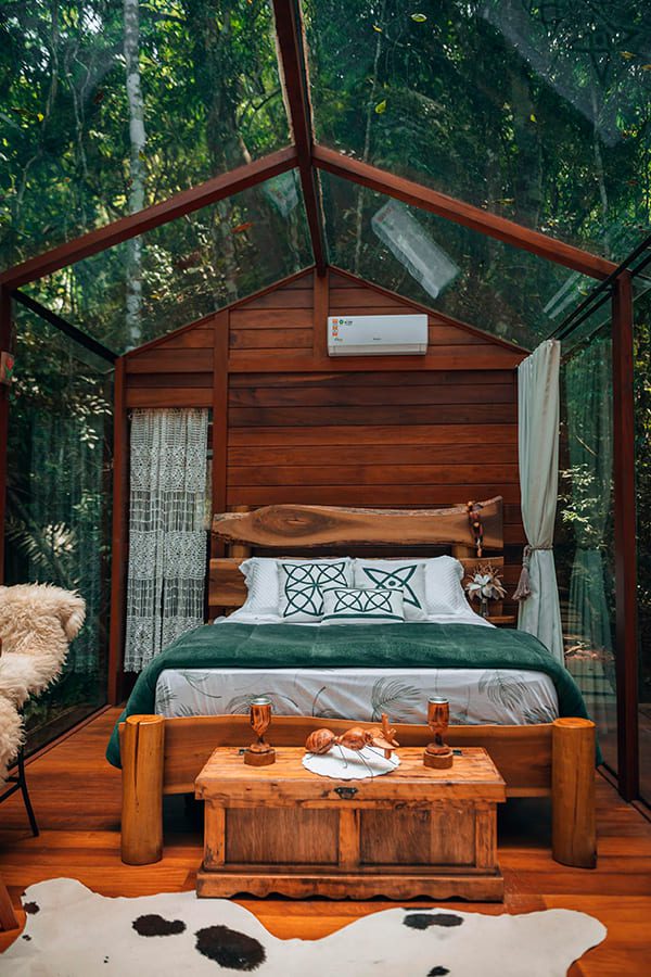 Comece o dia com uma caminhada revigorante pela trilha privativa, respire o ar puro da floresta e descubra a serenidade do rio e do lago.